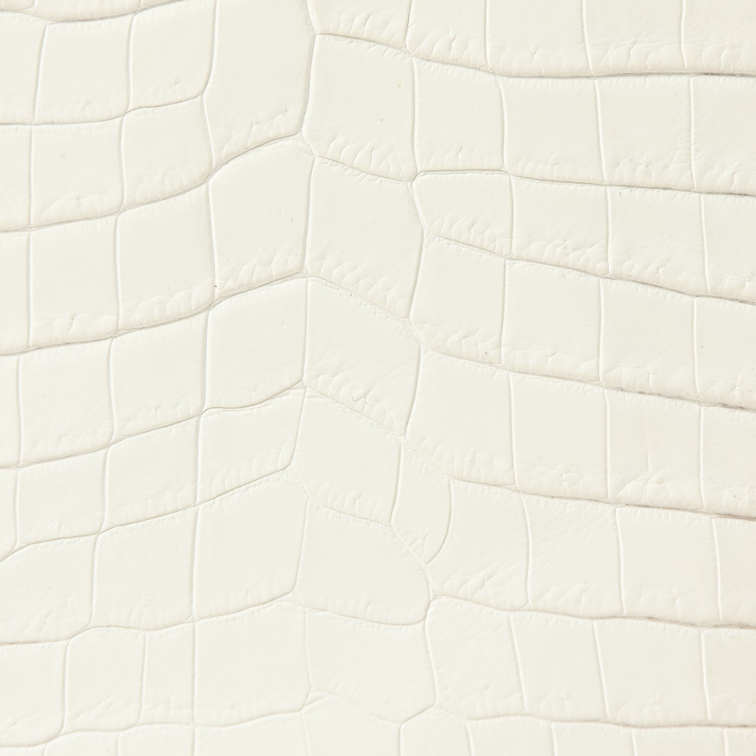ヒマラヤクロコダイルは、ホワイトからグレー(ベージュ)に移り変わる色彩を持っており、これは人間がデザインしたものではなく、クロコダイルの本来の鱗模様です。このコントラスト・グラデーションは非常に珍しく、希少価値の高い素材とされています。